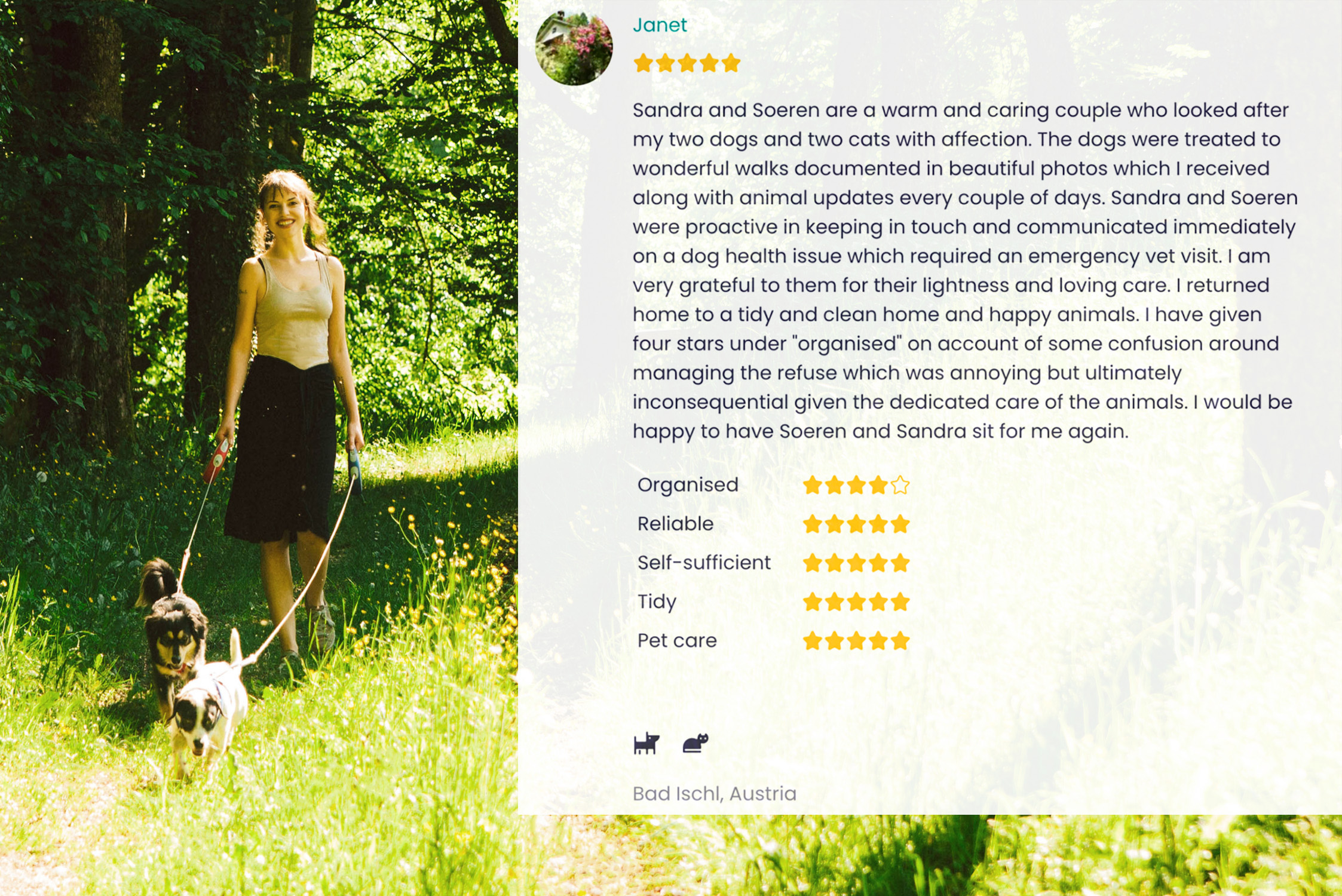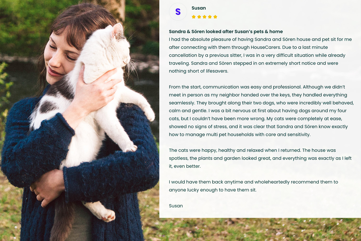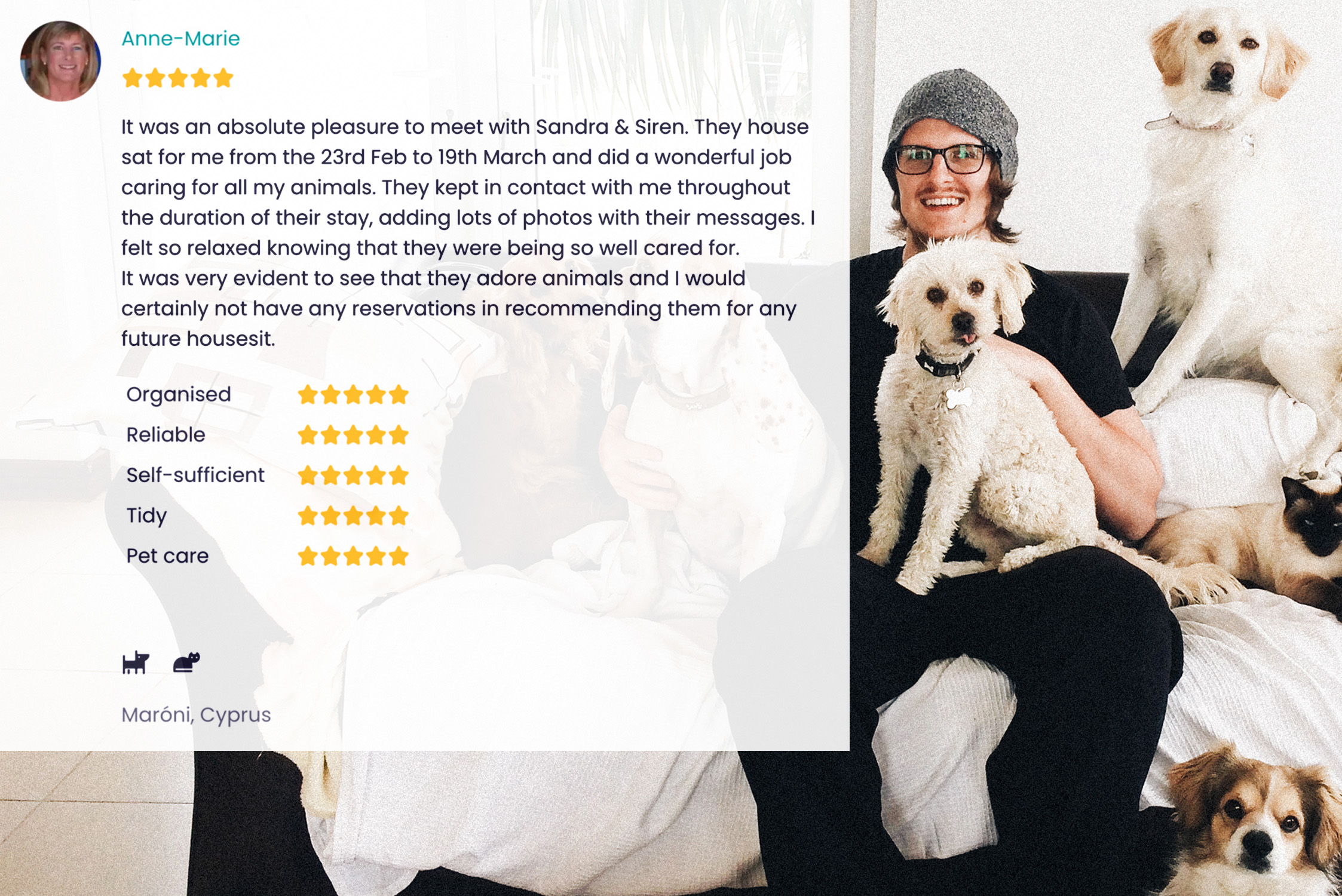 If you are considering us as guests or house sitters, you’ll find a selection of reviews below, collected over the past years.