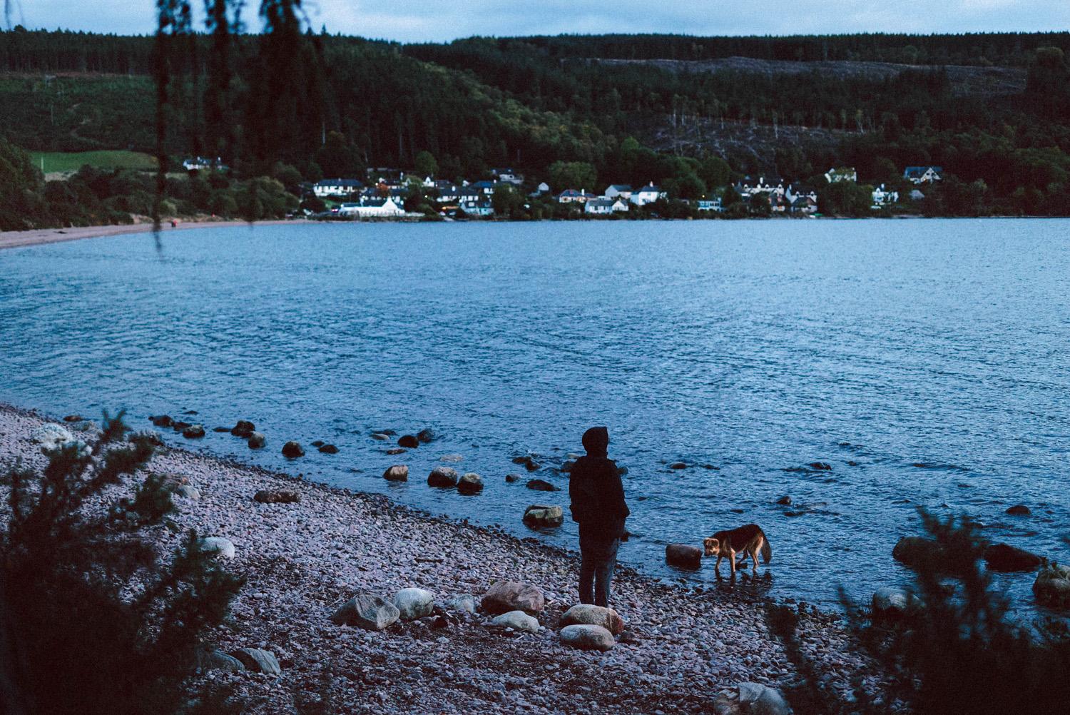 After making our way from the south of England through Wales and the northern Lake District, we first settled in Edinburgh, just as autumn slowly began to sweep across the land. Scotland turned colorful, windy, and cold. After six weeks in the capital, we traveled through the Highlands up to Inverness, where we lived near Loch Ness and turned it into Tia’s daily swimming pool. Naturally, with evening stick-shaped dinosaur necks rising from the water in the last rays of light breaking through the clouds, it was easy to imagine how the myth of Nessie might have been born.