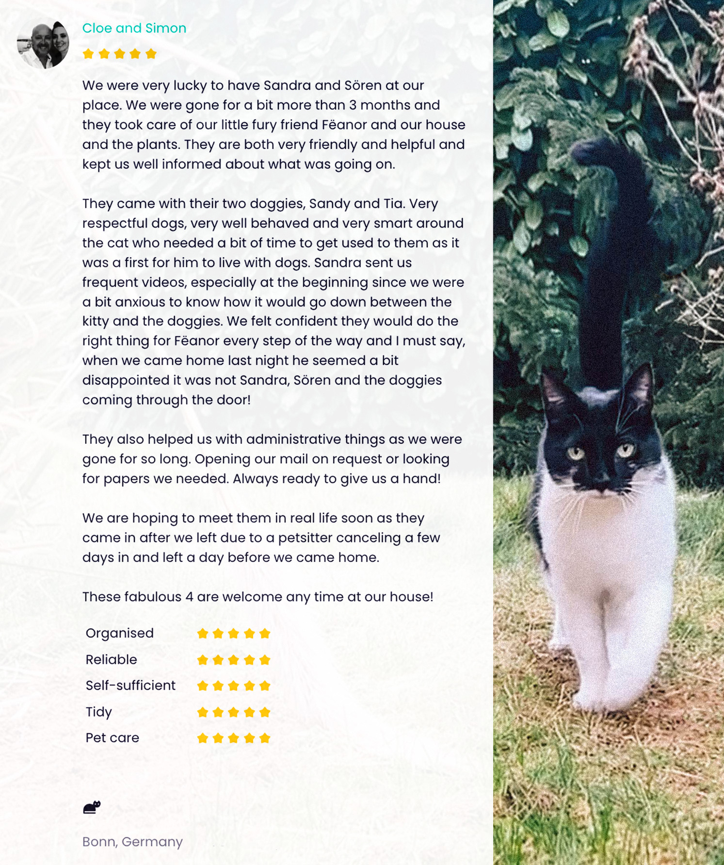 Auf Reisen leben wir jedoch nicht nur in Ferienhäusern. Wir vier sind engagierte Housesitter.